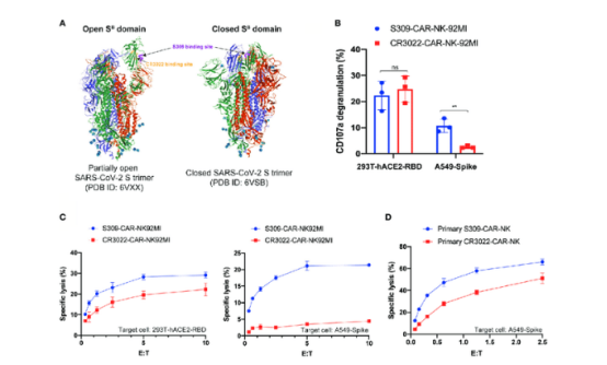 與近年來(lái)的研究結果相比,S309-CAR-NK具有較強的體外殺傷活性和細胞因子生成能力,可能具有預防新冠病毒感染的潛力,為免疫功能低下或患有糖尿病、癌癥、營(yíng)養不良和某些遺傳性疾病的高風(fēng)險新冠肺炎人群治療鋪平了道路。