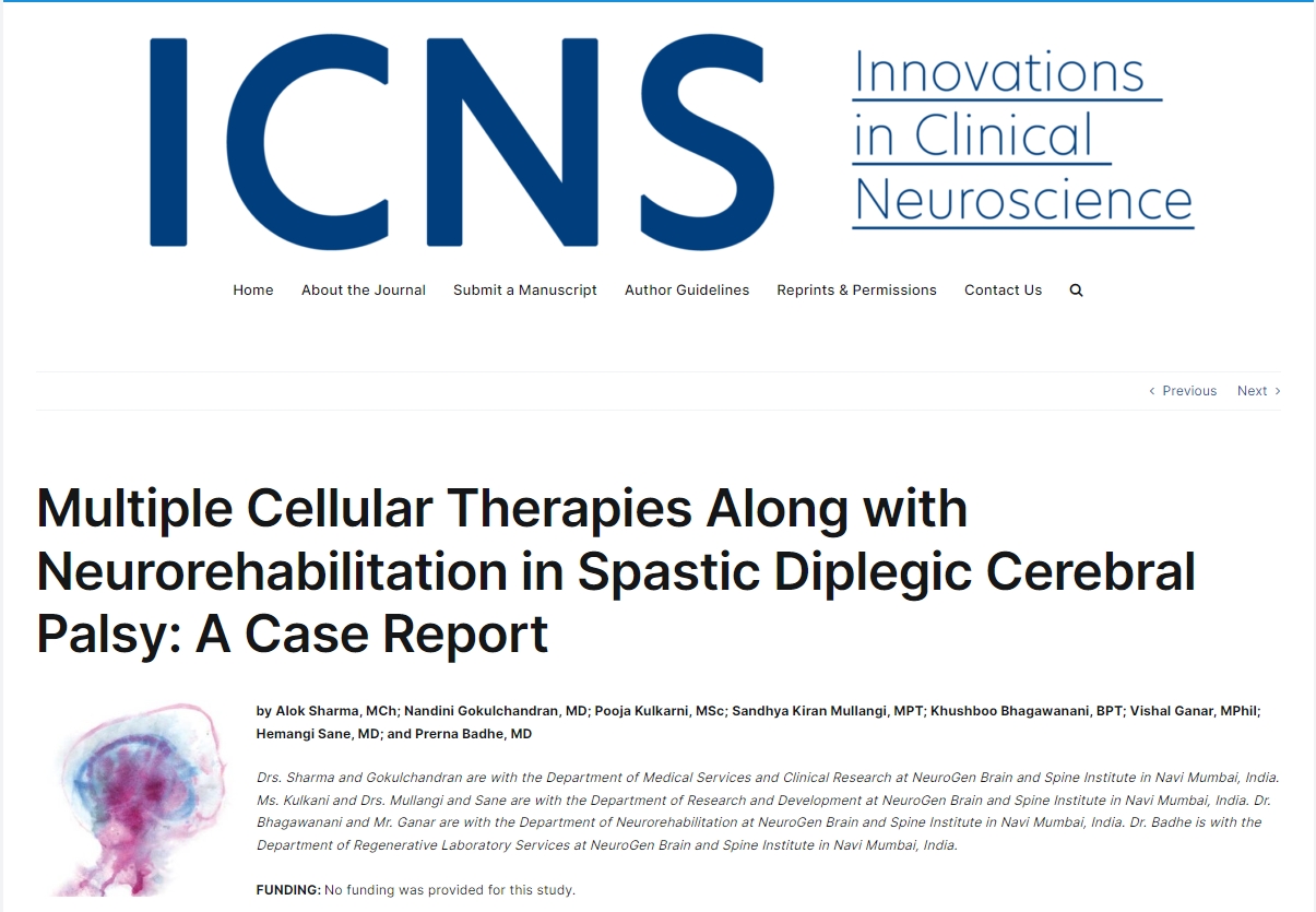 據《創(chuàng )新臨床神經(jīng)科學(xué)》雜志中一篇文章報道,多種細胞療法以及神經(jīng)康復可能是促進(jìn)腦癱康復的一種安全、可行的新選擇。