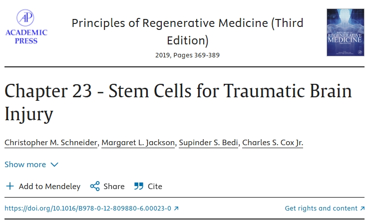 參考資料:Ashley, J.R., Cox, C.S. (2025). Cell Therapy for Traumatic Brain Injury. In: Liem, N.T., Forsyth, N.R., Heke, M. (eds) Cell Therapy. Springer, Singapore. https://doi.org/10.1007/978-981-96-1261-1_11