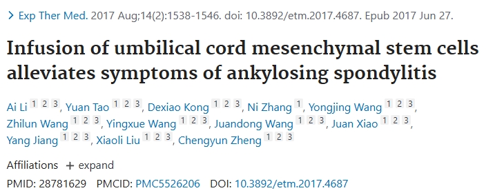 臍帶間充質(zhì)干細胞輸注可緩解強直性脊柱炎癥狀
