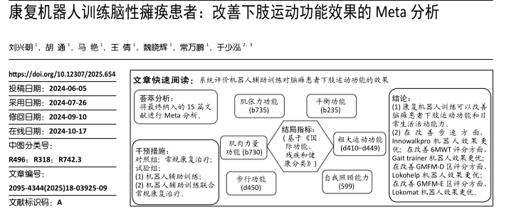 下肢外骨骼機器人:康復機器人訓練可以改善腦癱患者下肢運動(dòng)功能和日常生活活動(dòng)能力。2024年《中國組織工程研究》研究顯示,在改 善 步 速 方 面,Innowalkpro機器人效果更優(yōu);在改善6MWT評分方面,Gait trainer機器人效果更優(yōu);在改善GMFM-D區評分方面,Lokohelp機器人效果更優(yōu);在改善GMFM-E區評分方面,Lokomat機器人效果更優(yōu)。[11]