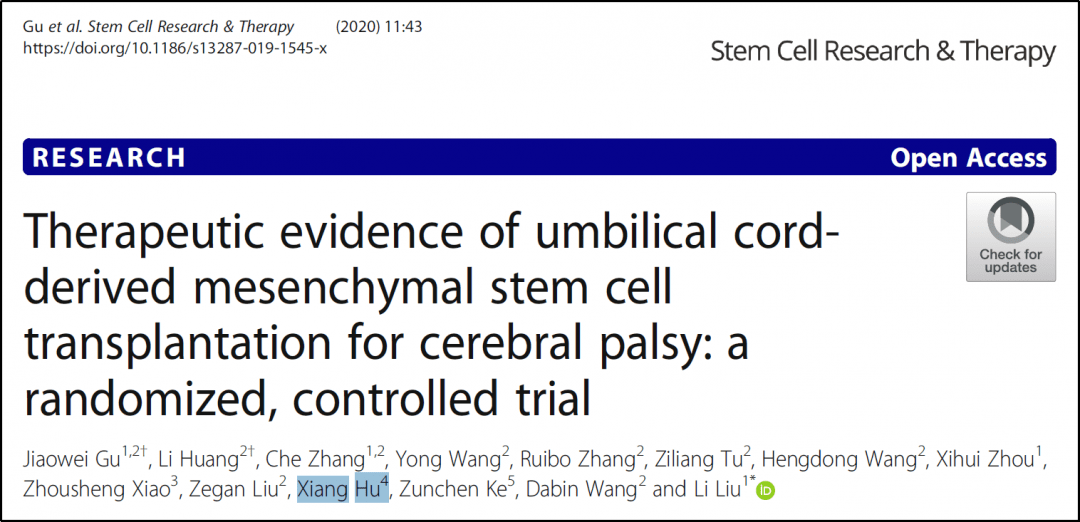 2018年,西安交通大學(xué)醫學(xué)院神經(jīng)生物學(xué)研究所呂海俠教授在細胞移植期刊(Cell Transplantation)上發(fā)表了一篇研究成果。通過(guò)隨機、安慰劑對照的臍帶血間充質(zhì)干細胞輸注治療腦癱患兒,結果顯示臍帶血治療組患兒的癥狀改善程度顯著(zhù)優(yōu)于對照組。證實(shí)臍帶間充質(zhì)干細胞治療腦癱安全且效果顯著(zhù)。
