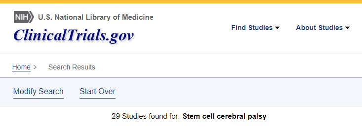截止2023年3月,在美國國立衛生研究院的最大臨床試驗注冊庫clinicaltrials.gov網(wǎng)站上注冊的有關(guān)干細胞治療腦癱的臨床研究項目有29項。其中中國有五項!