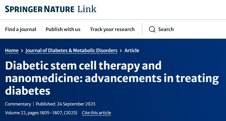 近期發(fā)表在權威期刊《Journal of Diabetes & Metabolic Disorders》的一項研究,卻給糖尿病治療帶來(lái)了令人興奮的新希望——干細胞聯(lián)合納米醫學(xué)治療糖尿病。鑒于傳統的糖尿病治療方法在提供長(cháng)期解決方案方面效果有限,因此研究人員開(kāi)始探索替代療法,例如糖尿病干細胞療法和納米醫學(xué)。在本文中,我們將深入探討這些尖端療法的潛力及其對糖尿病管理的影響。
