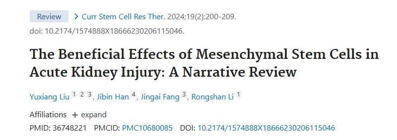 2024年,山西醫科大學(xué)五院發(fā)布了一篇《間充質(zhì)干細胞在急性腎損傷中的有益作用:敘述性綜述》的研究結果