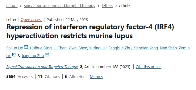 該研究不僅揭示了IRF4作為L(cháng)N疾病活動(dòng)度標志物的潛力,還證實(shí)靶向IRF4的SM934可通過(guò)多靶點(diǎn)調控改善腎損傷并減少自身抗體生成,為開(kāi)發(fā)新型抗狼瘡藥物提供了理論依據和臨床轉化方向。