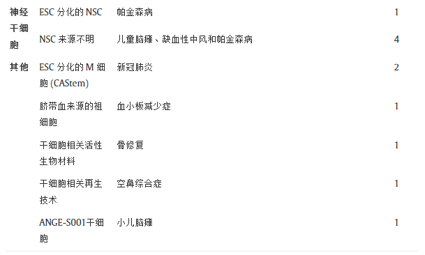 表2:中國自2015年以來(lái)使用人類(lèi)胚胎干細胞進(jìn)行的臨床試驗總結