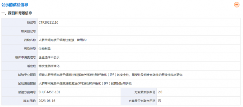 干細胞治療肺纖維化的臨床備案情況
