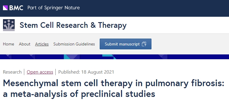 間充質(zhì)干細胞治療肺纖維化:臨床前研究的薈萃分析在2022年,中國科學(xué)院院士、解放軍總醫院第五醫學(xué)中心感染病診療與研究中心主任,全軍傳染病學(xué)研究所所長(cháng),國家感染性疾病臨床醫學(xué)研究中心主任王福生團隊在Nature旗下雜志Signal Transduction and Targeted Therapy上,發(fā)表了一篇題為《人臍帶間充質(zhì)干細胞對COVID-19重癥患者肺損傷的影響:一項隨機、雙盲、安慰劑對照II期臨床試驗》的研究文章。