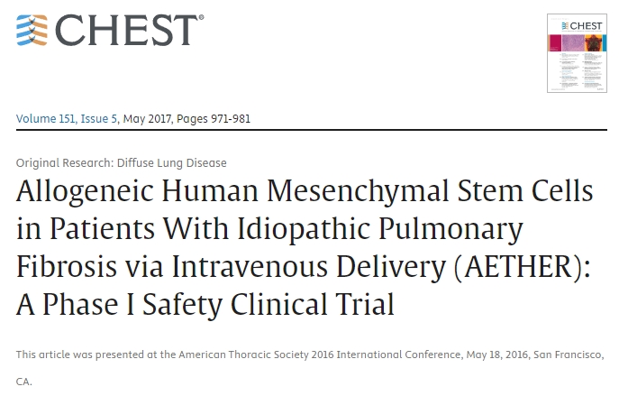 通過(guò)靜脈輸送 (AETHER) 治療特發(fā)性肺纖維化患者的同種異體人間充質(zhì)干細胞:I期安全性臨床試驗