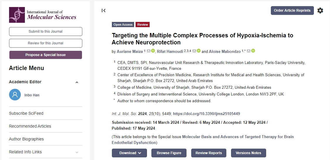 參考資料:Ma?za A, Hamoudi R, Mabondzo A. Targeting the Multiple Complex Processes of Hypoxia-Ischemia to Achieve Neuroprotection. International Journal of Molecular Sciences. 2024 May;25(10):5449. DOI: 10.3390/ijms25105449. PMID: 38791487; PMCID: PMC11121719.