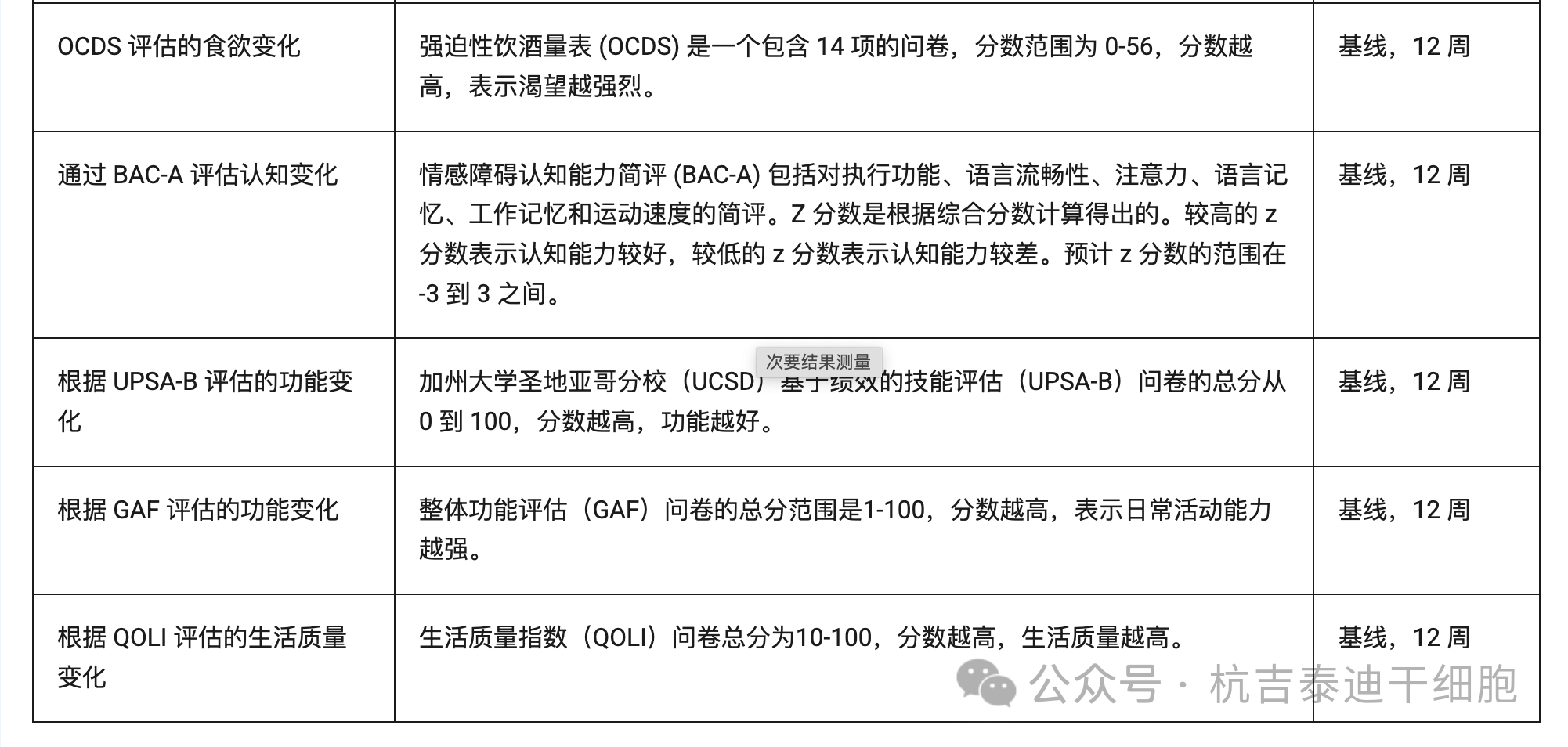臨床試驗二:同種異體人類(lèi)間充質(zhì)干細胞輸注與安慰劑在酒精使用障礙和重度抑郁癥中的比較