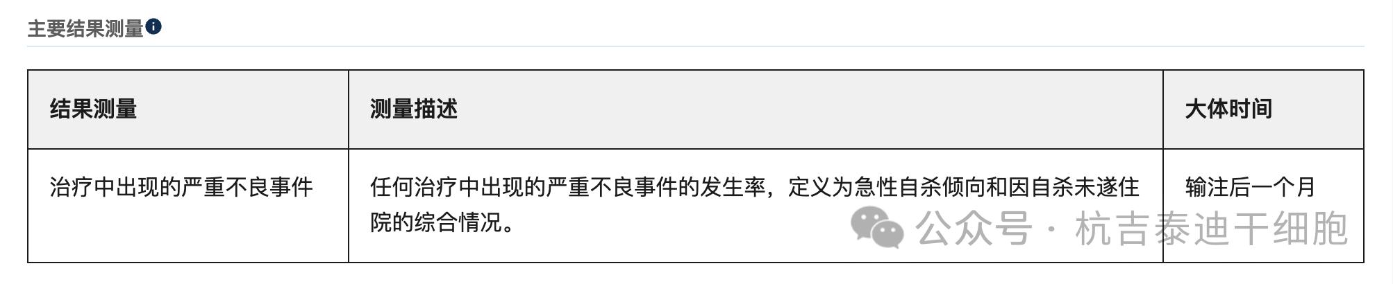 正式名稱(chēng):一項I期前瞻性、隨機、雙盲、安慰劑對照試驗,旨在評估同種異體人類(lèi)間充質(zhì)干細胞輸注與安慰劑對難治性抑郁癥患者的安全性和潛在療效。