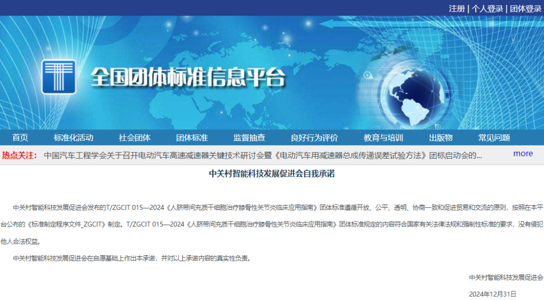 近期發(fā)布的《人臍帶間充質(zhì)干細胞治療膝骨性關(guān)節炎臨床應用指南》(T/ZGCIT015-2024)首次系統性地提出了治療適應癥、禁忌癥、注射方案及療效追蹤等核心標準,為臨床實(shí)踐提供了科學(xué)依據,確保治療的安全性與有效性。