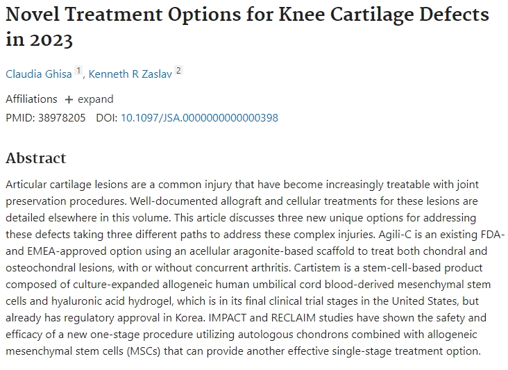 2023年膝關(guān)節軟骨缺損的新型治療方案