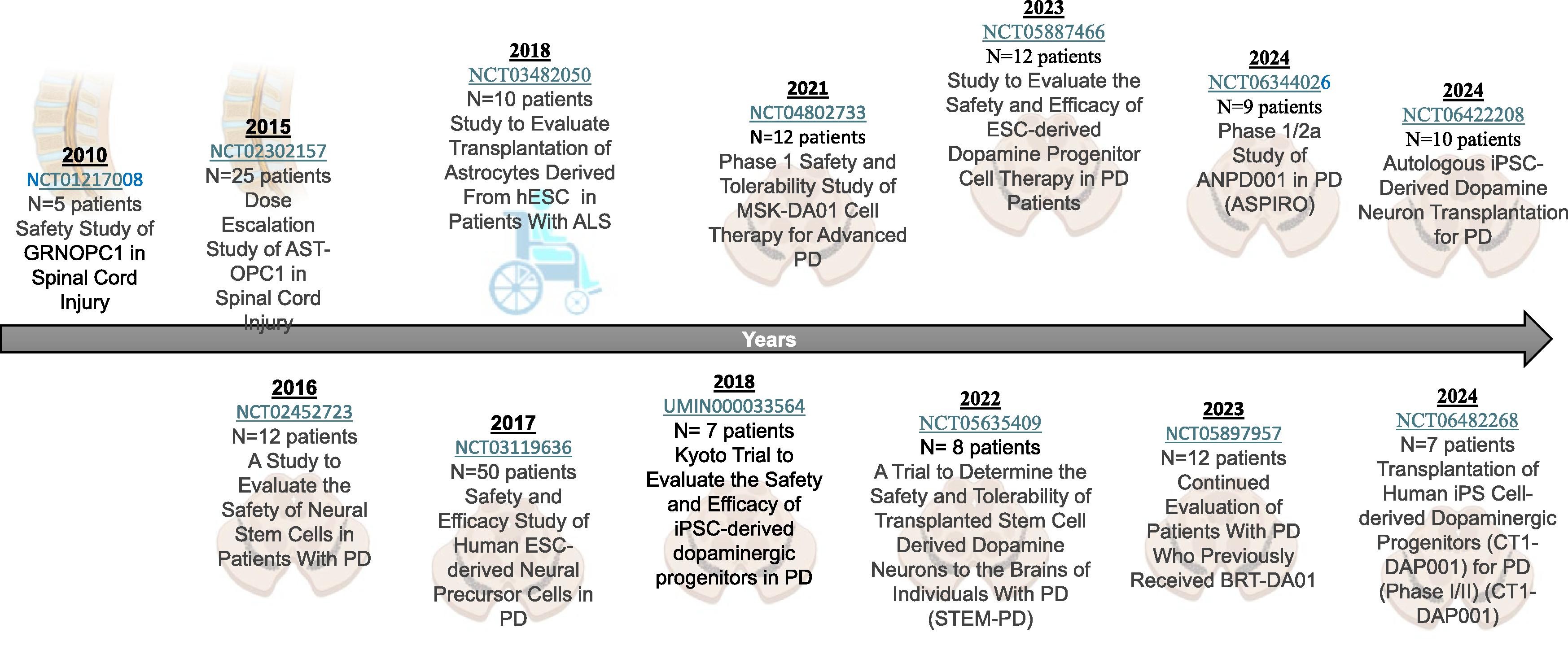 在過(guò)去二十年中,全面的臨床前有效性(概念驗證)和安全性研究推動(dòng)了多能干細胞針對多種神經(jīng)退行性疾病的首次人體I-II期臨床試驗的啟動(dòng)。