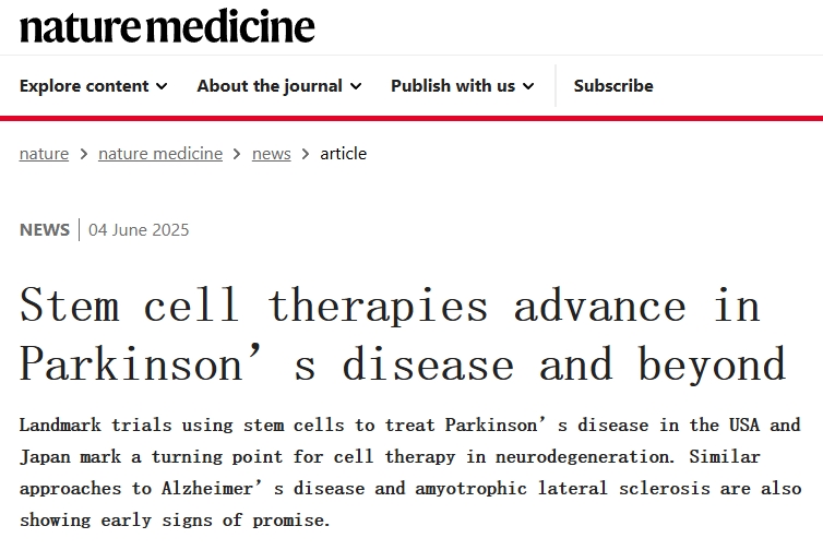為此,近日,《nature》期刊雜志子刊《nature medicine》發(fā)表了一篇“干細胞療法在帕金森病及其他疾病治療中取得進(jìn)展”的文章。文章闡述干細胞治療神經(jīng)系統疾病不僅在帕金森病方面取得了重大進(jìn)展,也在其它疾病取得了有效突破。