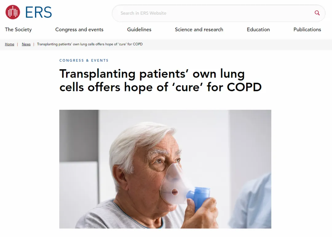 9月27日至10月1日,在全球呼吸領(lǐng)域頂級會(huì )議——第35屆歐洲呼吸學(xué)會(huì )(European Respiratory Society,ERS)年會(huì )上,一項標志著(zhù)慢性阻塞性肺疾?。–OPD)治療進(jìn)入再生醫學(xué)新紀元的突破性臨床研究正式公布。[10]
