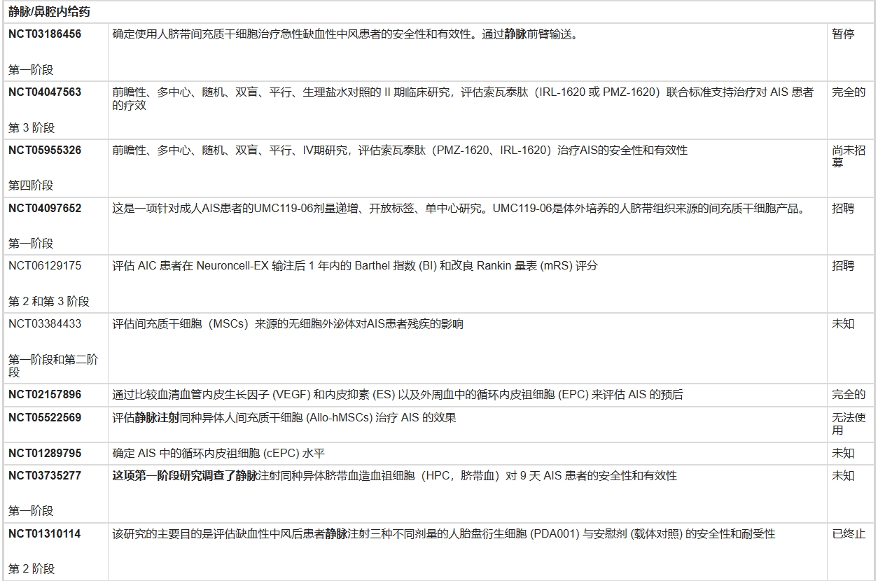 表3:從國家臨床試驗網(wǎng)站提取的干細胞治療急性缺血性卒中 (AIS) 試驗