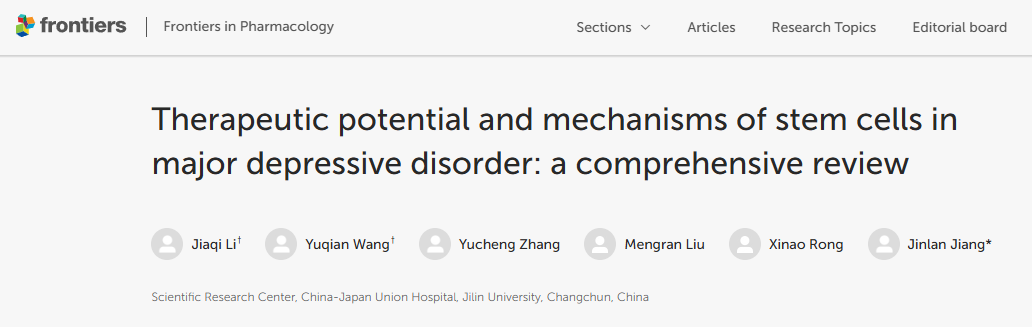 進(jìn)一步支持這一方向的是,2024年11月25日,吉林大學(xué)中日聯(lián)誼醫院科研中心在《藥理學(xué)前沿》雜志發(fā)表了一篇題為“干細胞在重度抑郁癥中的治療潛力和機制:綜合綜述”的研究綜述。