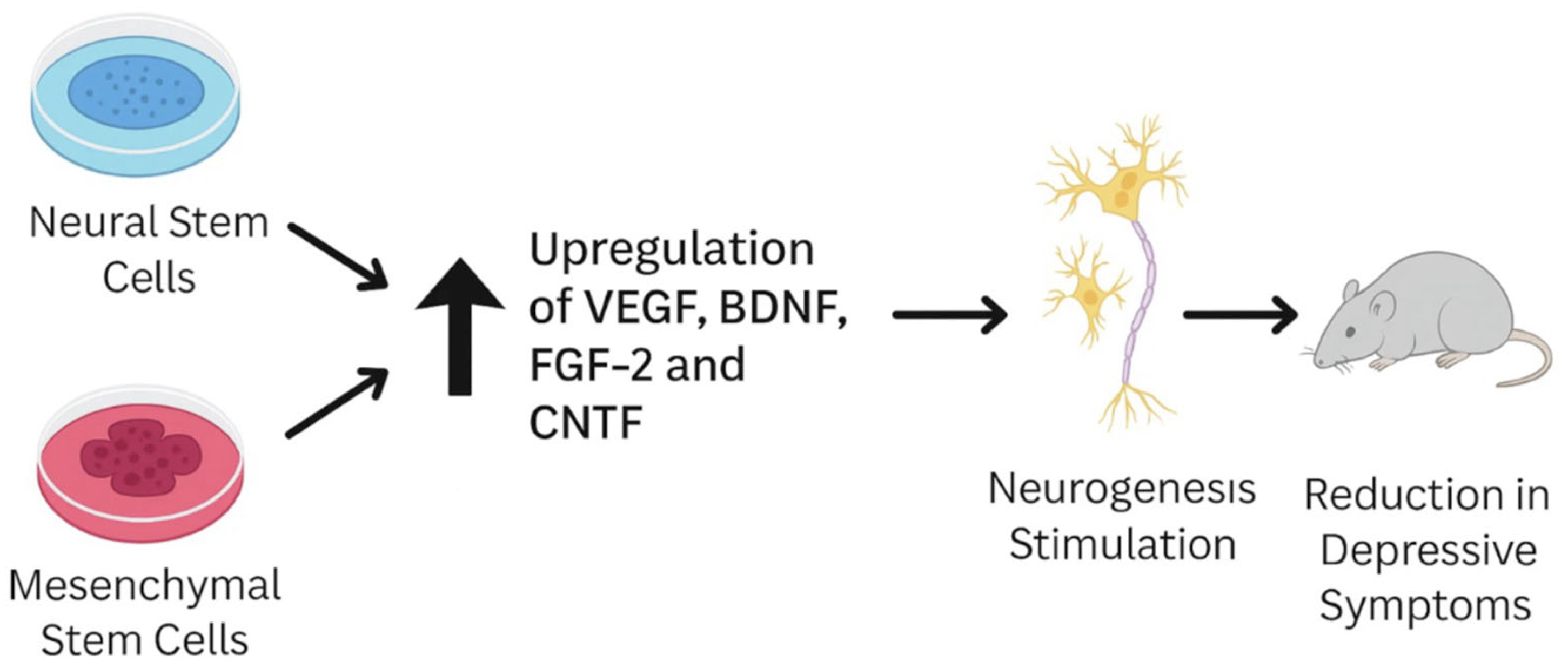 本綜述綜合了目前臨床前研究和早期臨床試驗中關(guān)于間充質(zhì)干細胞 (MSC)、神經(jīng)干細胞 (NSC) 和誘導性多能干細胞 (iPSC) 在緩解抑郁樣行為方面的有效性的證據,并指出干細胞治療抑郁癥的主要機制包括增強海馬神經(jīng)發(fā)生、調節腦源性神經(jīng)營(yíng)養因子 (BDNF)-TrkB通路、通過(guò)小膠質(zhì)細胞極化減輕神經(jīng)炎癥以及通過(guò)外周至中樞通路(例如迷走神經(jīng))恢復血清素信號傳導。