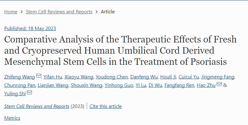 Wang, Z., Hu, Y., Wang, X.等。新鮮和冷凍保存的人臍帶間充質(zhì)干細胞治療銀屑病療效的比較分析。?干細胞 Rev and Rep?(2023)。https://doi.org/10.1007/s12015-023-10556-8