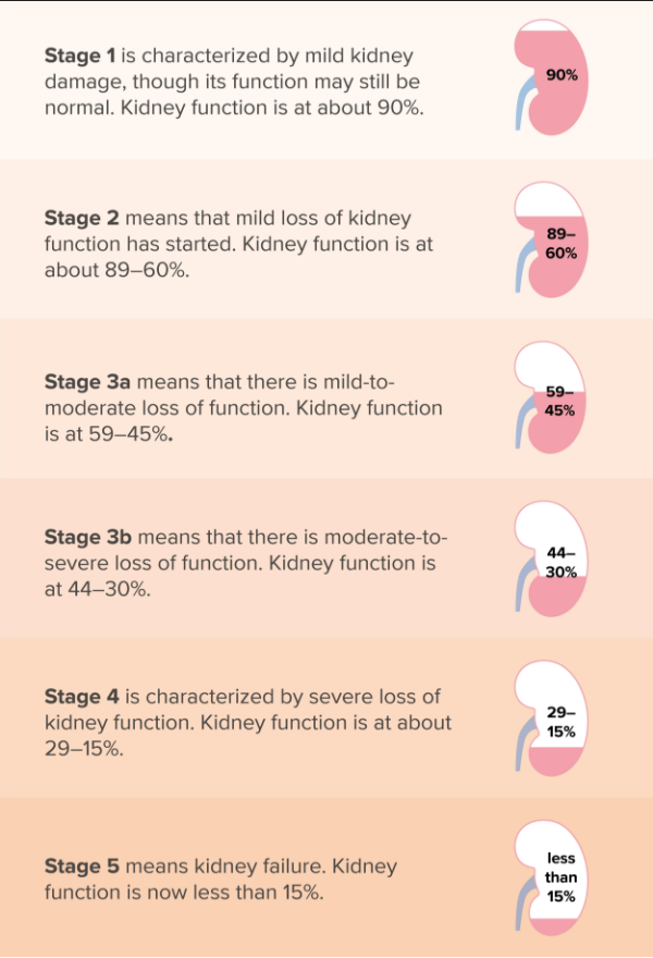 根據美國國家腎臟基金會(huì )(National Kidney Foundation)的研究,腎病可分為五個(gè)階段: