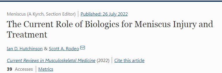 近年來(lái),利用包括干細胞在內的生物制劑來(lái)治療半月板損傷的研究越來(lái)越常見(jiàn)。2022年6月,科學(xué)家在《Current Reviews in Musculoskeletal Medicine》提出,生物制劑有望提升半月板損傷術(shù)后的修復和愈合速度,并且在實(shí)驗室研究階段已經(jīng)取得重大突破。