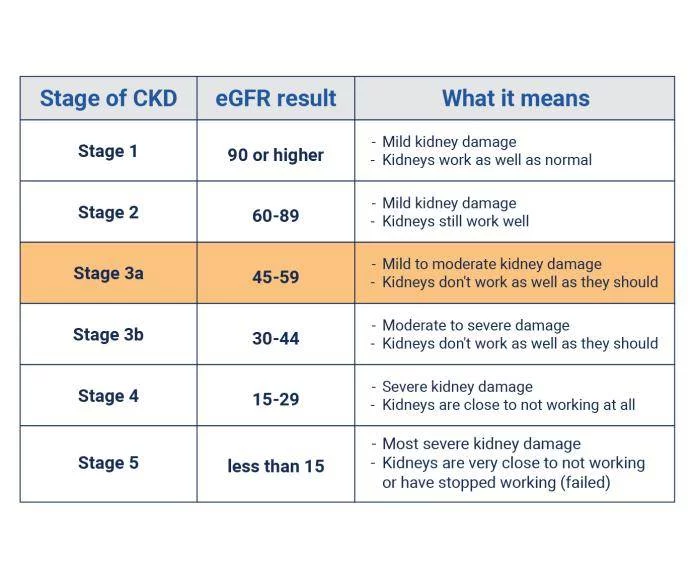 - 第3a階段意味著(zhù)您的eFGR在45到59之間