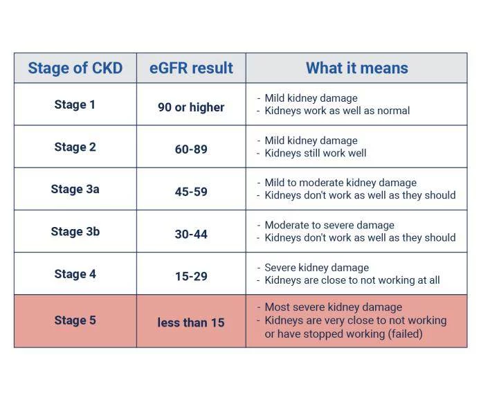 每個(gè)階段都基于eGFR數值,并有不同的癥狀和治療方法。