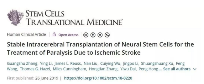 目前該研究課題進(jìn)展順利,值得一提的是,該臨床研究團隊關(guān)于神經(jīng)干細胞治療缺血性腦卒中的Ⅰ期臨床研究結果,已經(jīng)于2019年6月26日發(fā)表在《干細胞轉化醫學(xué)》國際期刊上。Ⅰ期臨床研究結果反響良好,顯示出一種特殊的人源神經(jīng)干細胞系對于偏癱性中風(fēng)(身體的一側無(wú)力或癱瘓)后運動(dòng)功能恢復的治療潛力。