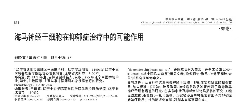 中國臨床康復第9卷第20期《海馬神經(jīng)干細胞在抑郁癥治療中的可能作用》論文中提到:海馬損傷、神經(jīng)干細胞增殖抑制是抑郁癥發(fā)病的關(guān)鍵環(huán)節,保護海馬神經(jīng)元、修復海馬受損功能是抗抑郁的重要措施。