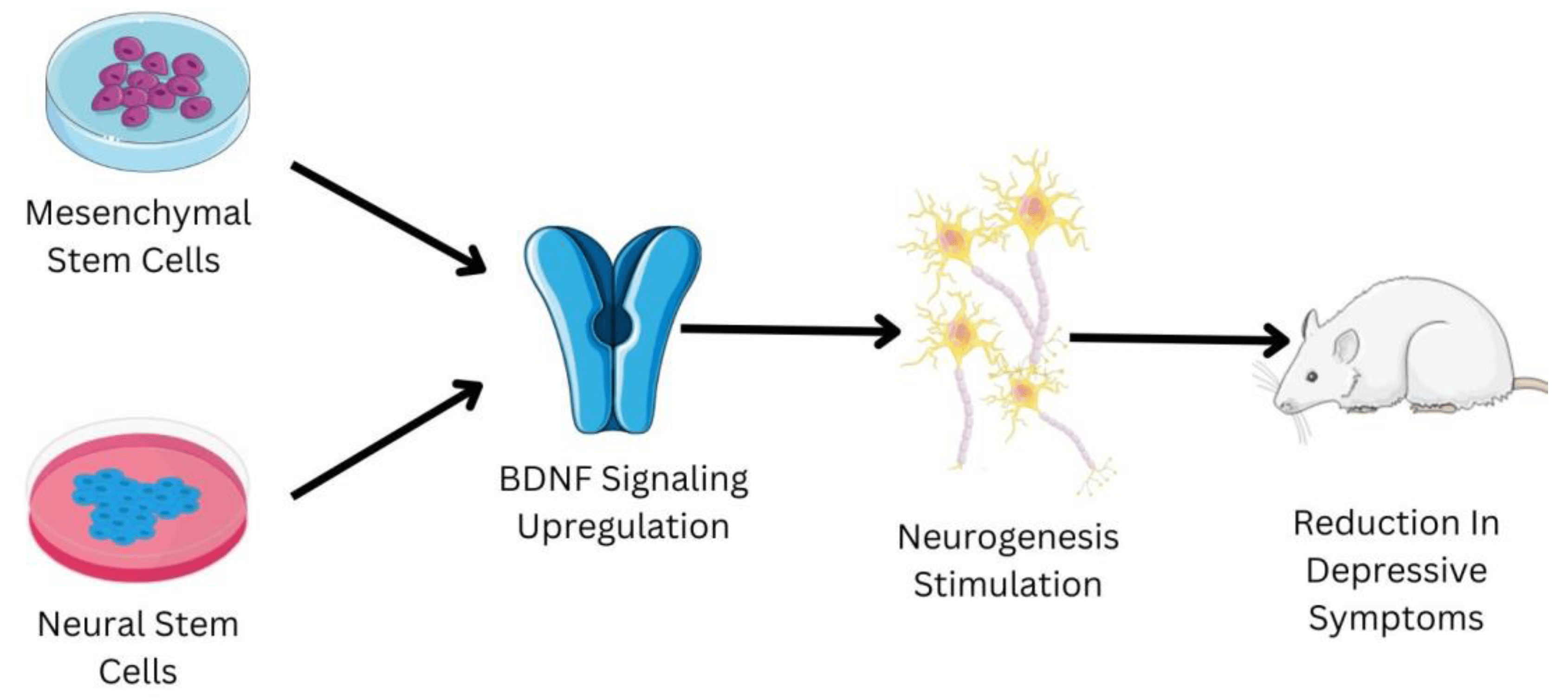干細胞分離和開(kāi)發(fā)的進(jìn)步使科學(xué)家能夠識別培養特異性細胞類(lèi)型,用于多種疾病的組織修復。干細胞具有治療抑郁癥的能力;圖3中的示意圖簡(jiǎn)要說(shuō)明了某些類(lèi)型的干細胞治療抑郁癥的機制。