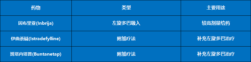 - 藥物:Inbrija、Istradefylline和Buntanetap。