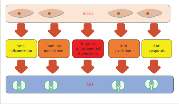 間充質(zhì)干細胞 (MSC) 療法被認為在治療AKI方面具有巨大的治療前景,并且已在多種AKI動(dòng)物模型中顯示出有益的治療效果。