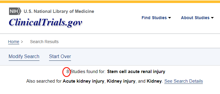 截止目前,已經(jīng)有8項間充質(zhì)干細胞治療急性腎損傷的臨床試驗注冊在美國國立衛生研究院的最大臨床試驗注冊庫http://clinicaltrials.gov上。