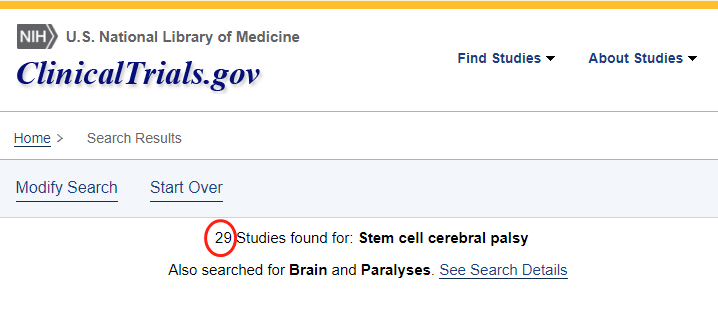 截止2022年12月,在美國國立衛生研究院的最大臨床試驗注冊庫clinicaltrials.gov網(wǎng)站上注冊的有關(guān)干細胞治療小兒腦癱的臨床研究項目有29項,其中中國有三項。所涉及干細胞類(lèi)型有神經(jīng)干細胞、骨髓干細胞、臍帶間充質(zhì)干細胞等,其中有些項目已經(jīng)完成,有些正在招募。
