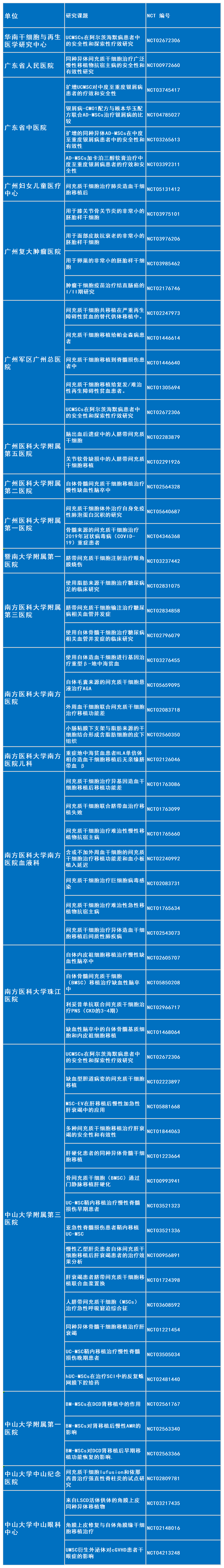 廣州,這座歷史悠久而又充滿(mǎn)活力的南方城市,以其開(kāi)放的城市精神和先進(jìn)的醫療水平,正在引領(lǐng)著(zhù)中國的干細胞研究。在這里,一群優(yōu)秀的醫療機構正在積極開(kāi)展干細胞臨床試驗,他們在ClinicalTrials.gov注冊了多個(gè)干細胞相關(guān)的研究課題(截止于2023年5月),旨在探索干細胞治療在治療各種疾病中的可能性。這些機構包括: