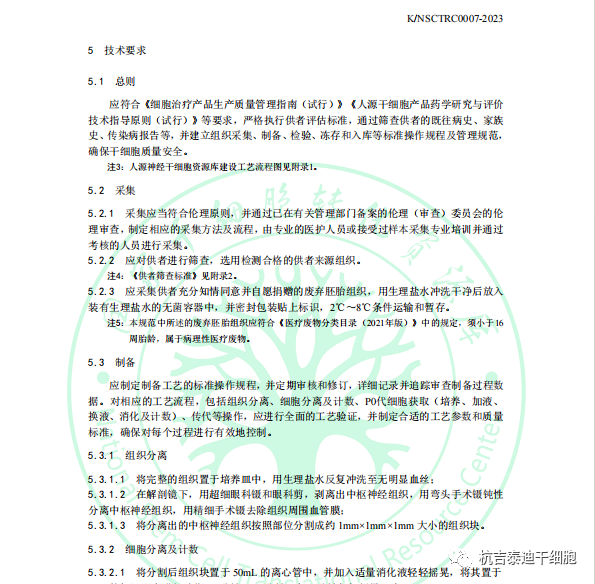 2023年12月01日,國家干細胞轉化資源庫正式發(fā)布《人組織來(lái)源神經(jīng)干細胞資源庫建設技術(shù)規范(試行)》(以下簡(jiǎn)稱(chēng)《規范》),該《規范》系針對神經(jīng)干細胞資源庫的建設。