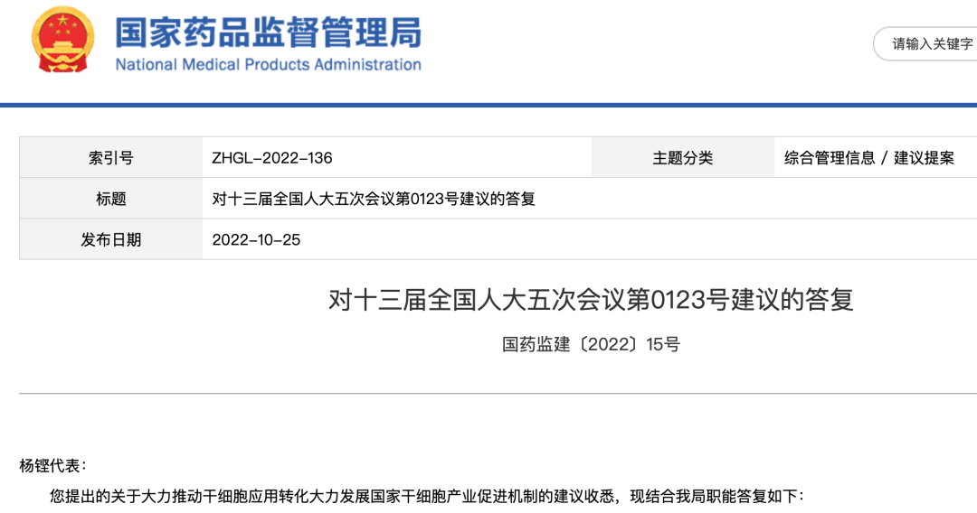 《關(guān)于進(jìn)一步推進(jìn)我國干細胞產(chǎn)業(yè)高質(zhì)量發(fā)展的提案》