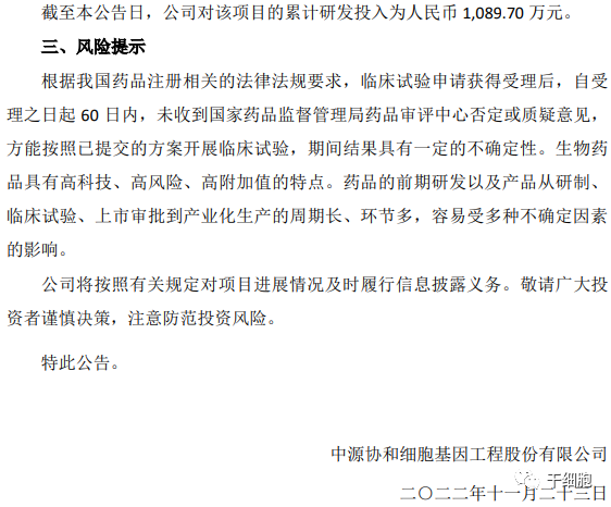 特此公告。中源協(xié)和細胞基因工程股份有限公司二○二二年十一月二十三日