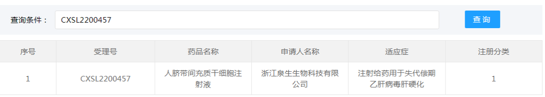 ▉ 干細胞藥物新增默示許可依據2023年1月2日,CDE官網(wǎng)顯示,浙江泉生生物科技有限公司的“人臍帶間充質(zhì)干細胞注射液”(受理號:CXSL2200457)獲得新藥臨床試驗默示許可,適應證為:注射給藥用于失代償期乙肝病毒肝硬化。這是該干細胞注射液的第四種適應證,此前已獲得默示許可用于注射給藥輕至中度急性呼吸窘迫綜合征(受理號:CXSL2200114)、強直性脊柱炎(受理號:CXSL2200299)、Ⅱ度燒傷(受理號:CXSL2200301)的臨床試驗。